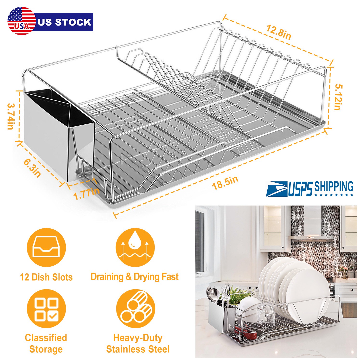 Dish Drying Rack Stainless Steel Dish Rack w/ Drainboard Cutlery Holder Kitchen Dish Organizer
